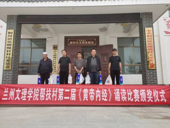 “推普周”期间,在语言文字推广基地指导下,学校驻村工作队同步开展相关推普活动。兰州文理学院帮扶村第二届中华经典《黄帝内经》诵读比赛颁奖仪式在党崾岘村举行,“背诵经典送经典”活动在桐川镇广场开展,“诵读中华诗词 感受韵律之美”活动在乡村美育对接小学开展。