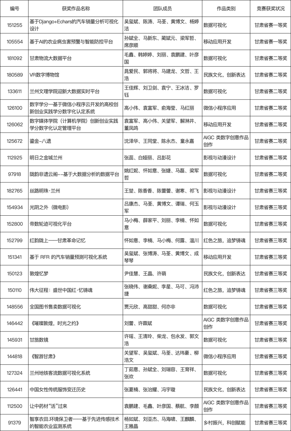 近日,由中国人工智能学会、全国大学生数字媒体科技作品及创意竞赛组委会主办的第十二届全国大学生数字媒体科技作品及创意竞赛甘肃省赛的评审结果已公布。我校数字媒体学院(计算机学院)学子最终获得省级一等奖2项、二等奖8项、三等奖15项。
