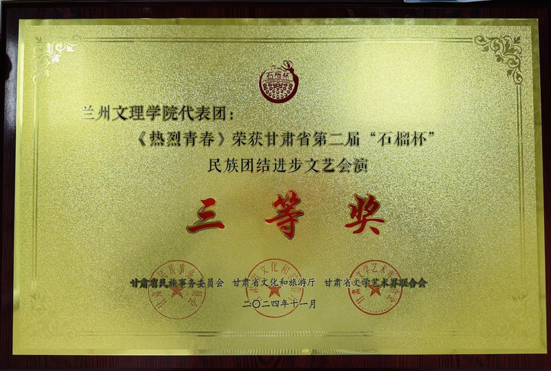 11月11日晚,由中共甘肃省委统战部、中共甘肃省委宣传部指导,甘肃省民族事务委员会、甘肃省文化和旅游厅、甘肃省文学艺术界联合会共同主办的甘肃省第二届“石榴杯”民族团结进步文艺会演闭幕式在甘肃大剧院落下帷幕。我校音乐舞蹈学院报送作品荣获三等奖。