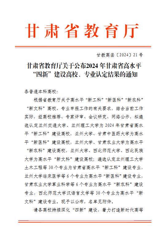 近期,甘肃省教育厅正式发布《甘肃省教育厅关于公布2024年甘肃省高水平“四新”建设高校、专业认定结果的通知》,我校学科建设喜获佳绩。其中,数字媒体技术专业脱颖而出,成功入选2024年甘肃省高水平“新工科”建设专业;新闻学、视觉传达设计两个专业凭借其扎实的学科基础和创新的教学理念,被认定为2024年甘肃省高水平“新文科”建设专业。