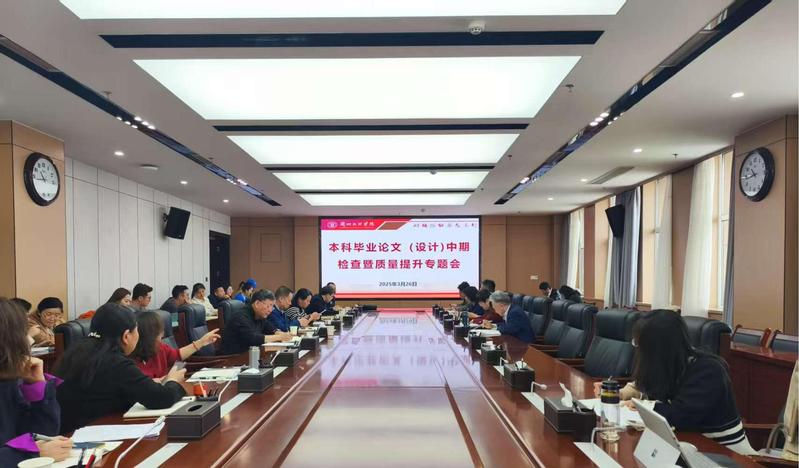 3月26日上午,学校在文昌楼1218会议室召开本科毕业论文(设计)中期检查暨质量提升专题会议。会议由校党委委员、副校长张焱主持,各二级学院院长、教学副院长、教研室主任,教务处、教学质量监控与评估办公室相关负责人参加会议。