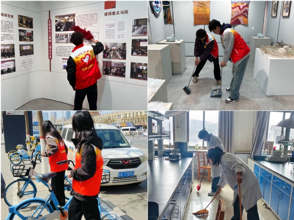 校园文明共建行动。组织志愿者在校园内开展禁烟宣传、环境清洁,各学院分团委也开展专项治理:化工学院清理墙皮,旅游学院清扫烟头、规范单车停放,外语学院和美术与设计学院对教室和展厅进行深度清洁,推动校园环境持续改善。