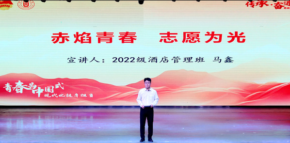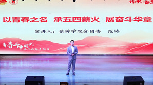 活动伊始,视频短片《向上的光》生动展现了雁苑学子积极向上、拼搏坚守的青春风采。随后,旅游学院分团委范涛老师以《以青春之名承五四薪火展奋斗华章》为题,回顾共青团百年奋斗征程,以历史中青年事迹彰显信仰力量,号召同学们传承五四精神,勇担时代使命。