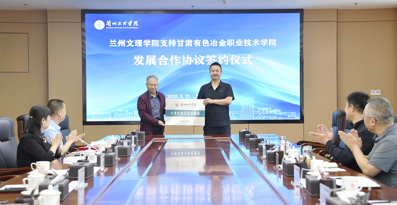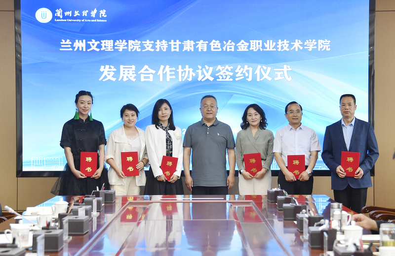 在签约仪式上,杜建武向我校音舞学院张世成教授、胡炬教授、董玫教授、樊娅娅教授,国家一级演员李莉、教育学院王成德教授颁发客座教授聘书;张焱代表学校向甘肃有色冶金职业技术学院授予“兰州文理学院大学生实习实训基地”牌。