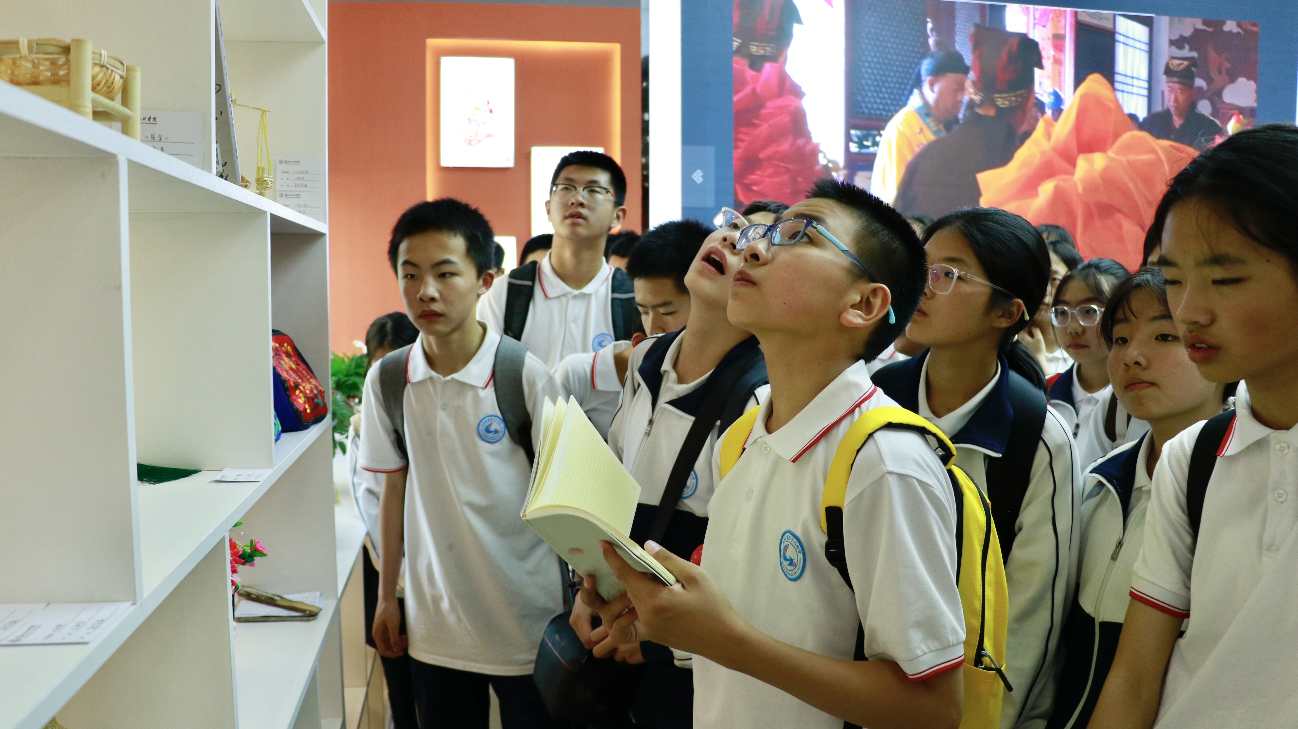 活动伊始,研学团走进非遗知识馆,在讲解员专业讲解下,师生们近距离观赏香包、皮影、剪纸等甘肃特色非遗展品,感受传统文化的独特魅力。