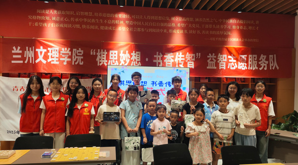 近日,我校旭日棋社“棋思妙想·书香传智”志愿服务队走进兰州市西北书城,开展棋类文化普及教学活动。通过前期海报宣传与微信公众号推广,活动吸引了众多亲子家庭参与,为暑期文化生活注入智力活力。