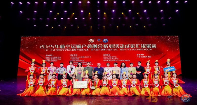 在激烈的赛事角逐中,我校代表队表现出色,荣获第十五届全国高等学校民航服务技能大赛本科综合类季军。韩雨萱、刘琦两位同学凭借优异表现获得形象大使殊荣,张敏同学成功跻身“世界旅游小姐金通赛区”二十强,将代表赛区参加2025年世界旅游小姐中国区总决赛。