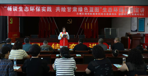 为深入贯彻习近平生态文明思想,积极投身甘肃生态建设,今年暑期,兰州文理学院“生态甘肃·青春护航”雁青科技志愿服务队,重点围绕宣讲习近平总书记在全面推动黄河流域生态保护和高质量发展座谈会上的重要讲话精神,在兰州市北面滩社区、武威市及肃南裕固族自治县皇城镇,开展了一系列形式多样的生态环保志愿服务活动。