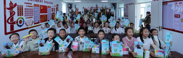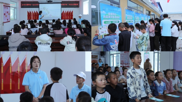 巧学强意识,童趣传理念。为更好地将生态环保理念根植于少年儿童心中,活动前期,志愿者针对性地为小学生群体设计了宣传折页与知识竞答内容。在皇城镇,服务队带领当地学生参观 “守护黄河命脉,筑牢生态屏障”“守护甘肃草场” 等主题展板,面向小学生举办环保知识讲座。活动中,通过播放宣传视频、展示生态图片、讲解环保知识等方式,用生动形象的画面阐释环保的重要性,并发放图文并茂的环保知识手册。此外,现场还开展有奖问答活动,孩子们热情高涨、积极作答,在轻松氛围中领悟环保要义、掌握环保小窍门,为环保意识的培育筑牢根基。