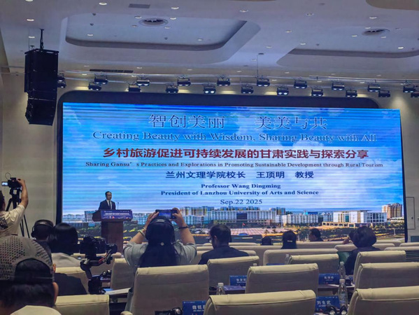 论坛设置主旨演讲、主题发言、圆桌对话、非遗文创作品展览几大板块。在主旨演讲环节,我校邀请的论坛专家中山大学中国非物质文化遗产研究中心主任宋俊华教授从学术前沿视角探讨了社区自觉与非遗可持续发展的关系。校长王顶明教授从乡村旅游促进可持续发展的甘肃实践与探索进行了主旨演讲,系统阐述了甘肃省乡村旅游发展的创新模式、成功经验,以及发展中面临的问题和未来前景,两位专家提出的观点均获得了与会专家高度评价和认可。