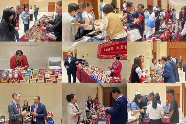论坛期间,学校精心组织的非遗文创作品展览成为亮点之一。洮砚制作技艺、庆阳香包绣制、庆阳剪纸、平凉蓝染技艺、兰州刻葫芦、崆峒面塑、兰州蛋雕、掐丝珐琅画等非遗项目传承人现场展示技艺,向世界绽放甘肃非遗的魅力与现代创意,吸引了众多与会嘉宾驻足欣赏。