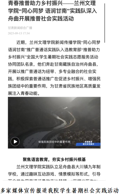 校媒协同创作:与网易甘肃、中国甘肃网共建运营工作站,学生以“记者+编辑+主播”身份参与新闻采编,作品获中国广播电视大奖提名奖、教育部“读懂中国”优秀微视频等荣誉,成为甘肃文化传播的重要力量。