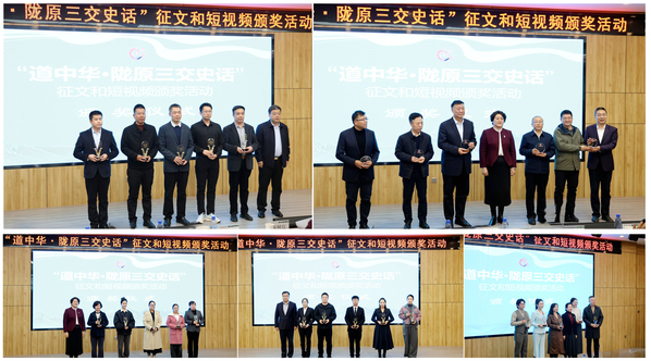 11月4日下午,由甘肃省民族事务委员会、甘肃省教育厅、甘肃省广播电视总台、甘肃省文学艺术界联合会联合主办的“道中华·陇原三交史话”征文和短视频征集活动颁奖仪式在我校举行。省民委党组成员、副主任宋树红,校党委书记苟永平,省文联党组成员、副主席王正茂,省广电总台副台长李艳芬等领导出席活动。