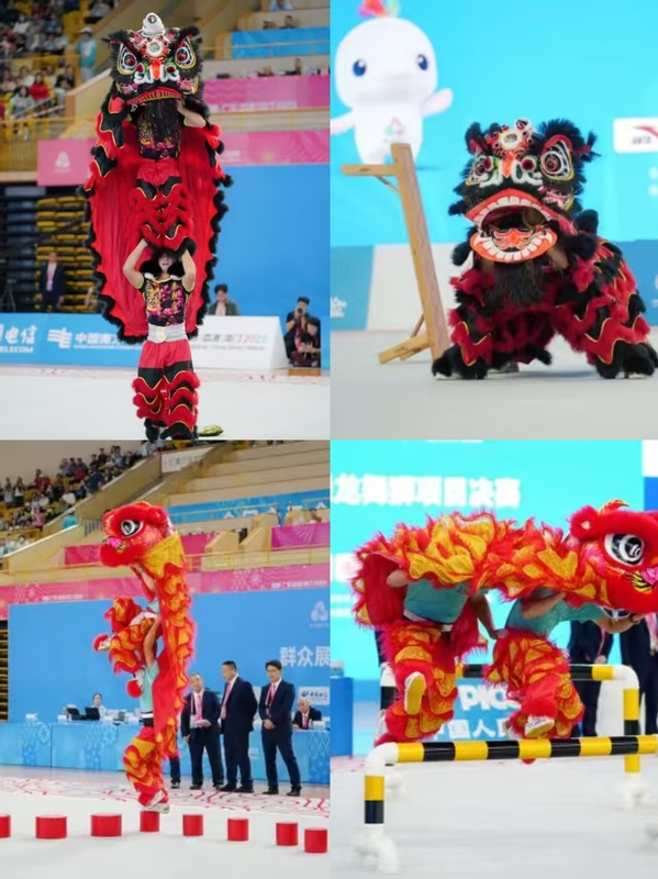 11月13日,第十五届全国运动会群众展演舞龙舞狮项目决赛在广东佛山圆满落幕,本次比赛共有来自全国80支队伍、892名运动员参赛,共设有舞龙自选、舞龙规定、舞龙障碍、南狮自选、南狮障碍、北狮自选、彩带龙自选等八个项目。由兰州文理学院社会体育学院学生为班底组建的甘肃省舞狮队,代表甘肃省出征赛场,凭借南狮障碍项目的利落表现斩获三等奖,传统项目《狮子出洞采蟹青》精彩演绎惊艳全场,为陇原传统体育文化赢得满堂喝彩。