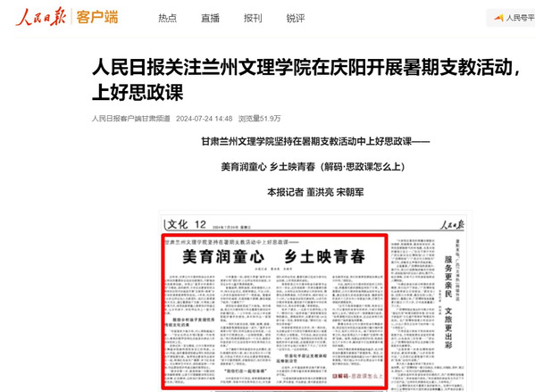 “传承文化 美育之韵”社会实践:2024年7月,学院组织师生赴庆城县太白梁乡开展“三下乡”暑期社会实践,通过音乐、舞蹈、美术及非遗手工艺教学,为当地学生提供美育启蒙。活动获《人民日报》报道肯定,被誉为“新时代美育教育的生动样本”。