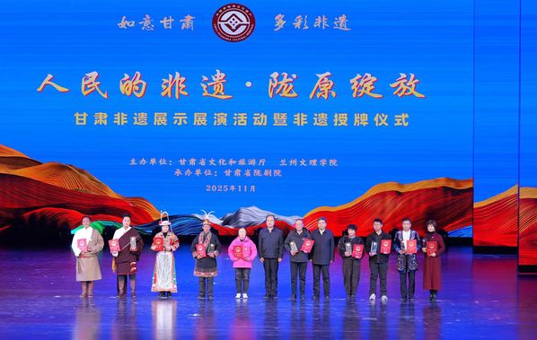 11月28日晚,由甘肃省文化和旅游厅与兰州文理学院联合主办,甘肃省陇剧院承办的“人民的非遗·陇原绽放”甘肃非遗展示展演活动暨非遗授牌仪式”在我校艺术实践中心精彩上演。