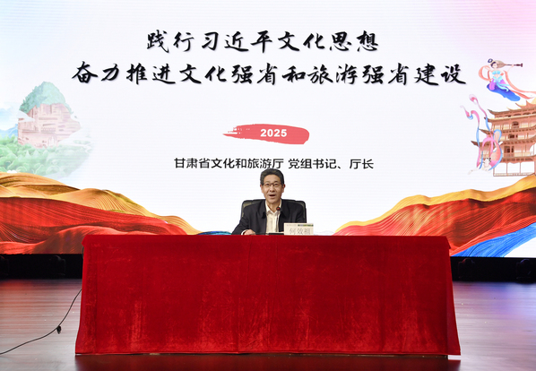 苟永平表示,我校作为全省唯一聚焦文化旅游产业发展的应用型高校,服务文化强省、旅游强省建设是目标导向和使命担当,要持续提升发展质量、服务效能。一是要强化思想引领,用习近平文化思想武装头脑,指导办学实践。要结合学习贯彻党的二十届四中全会精神,深入领会习近平文化思想的丰富内涵与实践要求,自觉围绕中心服务大局,努力在服务文旅上建高地。二是要落实根本任务,培育锐意创新的高素质文化人才。深入实施新时代立德树人工程,优化调整学科专业设置,打造“文化+”专业集群和微专业矩阵,创新校政企协同育人模式,强化实践教学,为文化旅游强省建设提供有力人才支撑。三是担当时代使命,以文化赋能经济社会发展。要瞄准甘肃促进文旅深度融合、打造支柱产业的战略需求,深化“政产学研用”协同,积极投身文化人才培养、文化遗产保护、文艺精品创作、文创产品研制、文化传播传承和文旅项目攻关的生动实践,奋力书写文化强国建设新答卷。