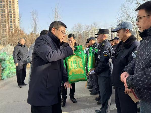 2月10日农历小年,党委书记苟永平,党委委员、副校长张兴辉在相关部门负责人陪同下,深入校园一线,走访慰问了寒假期间坚守岗位的工作人员,为大家送上节日的问候、新春的祝福与暖心的慰问品,向默默奉献的值守人员致以诚挚的感谢。